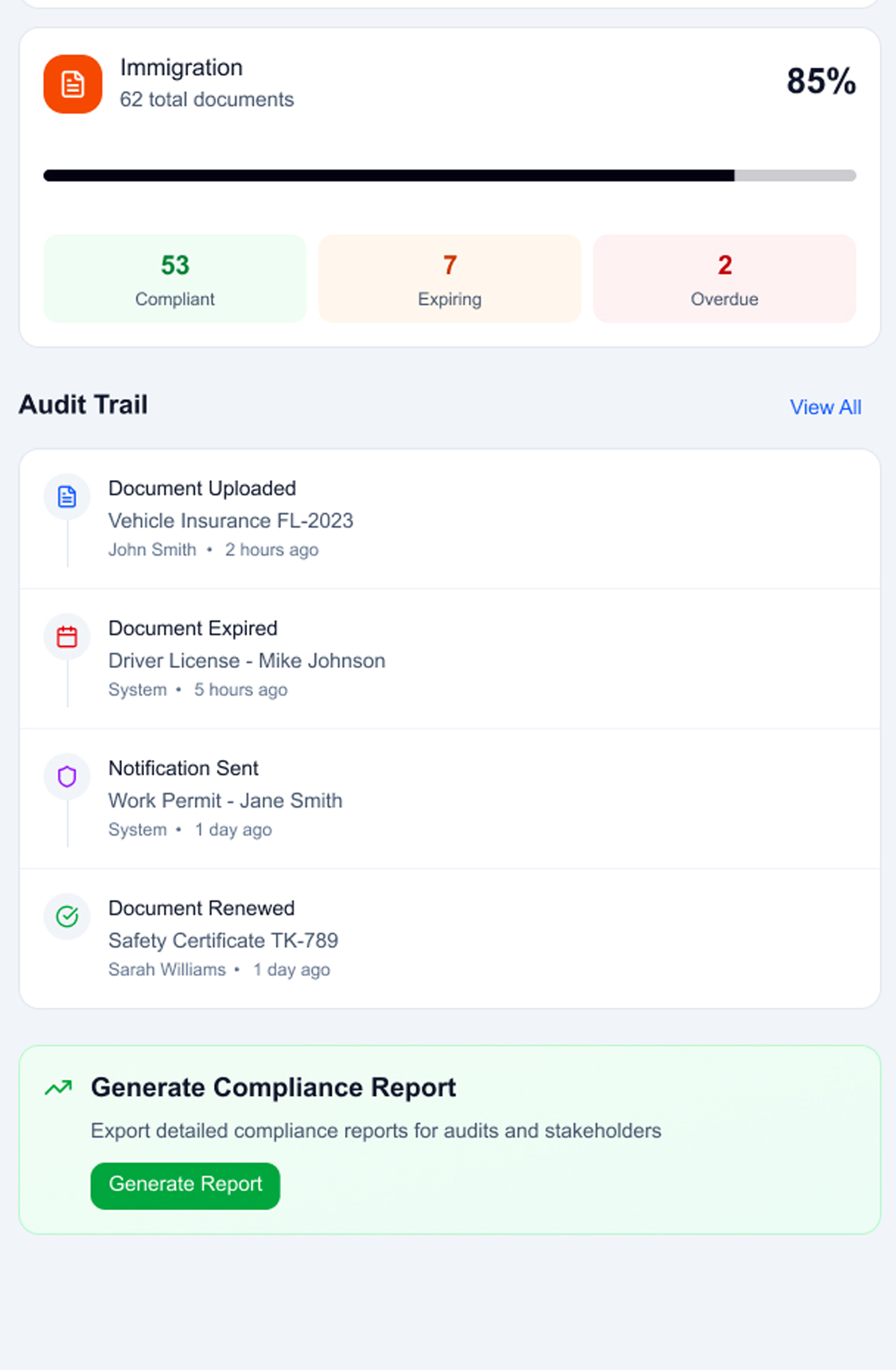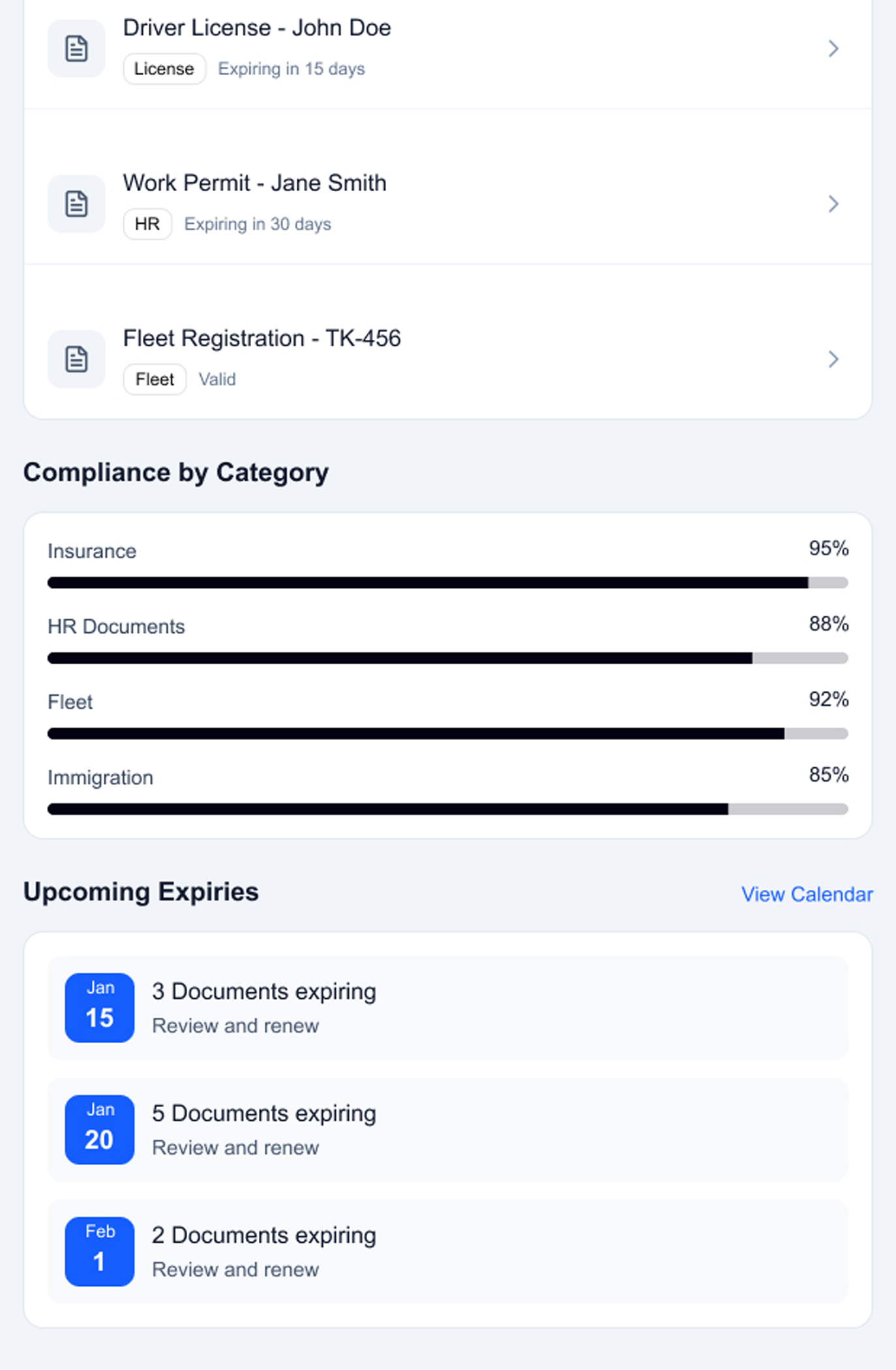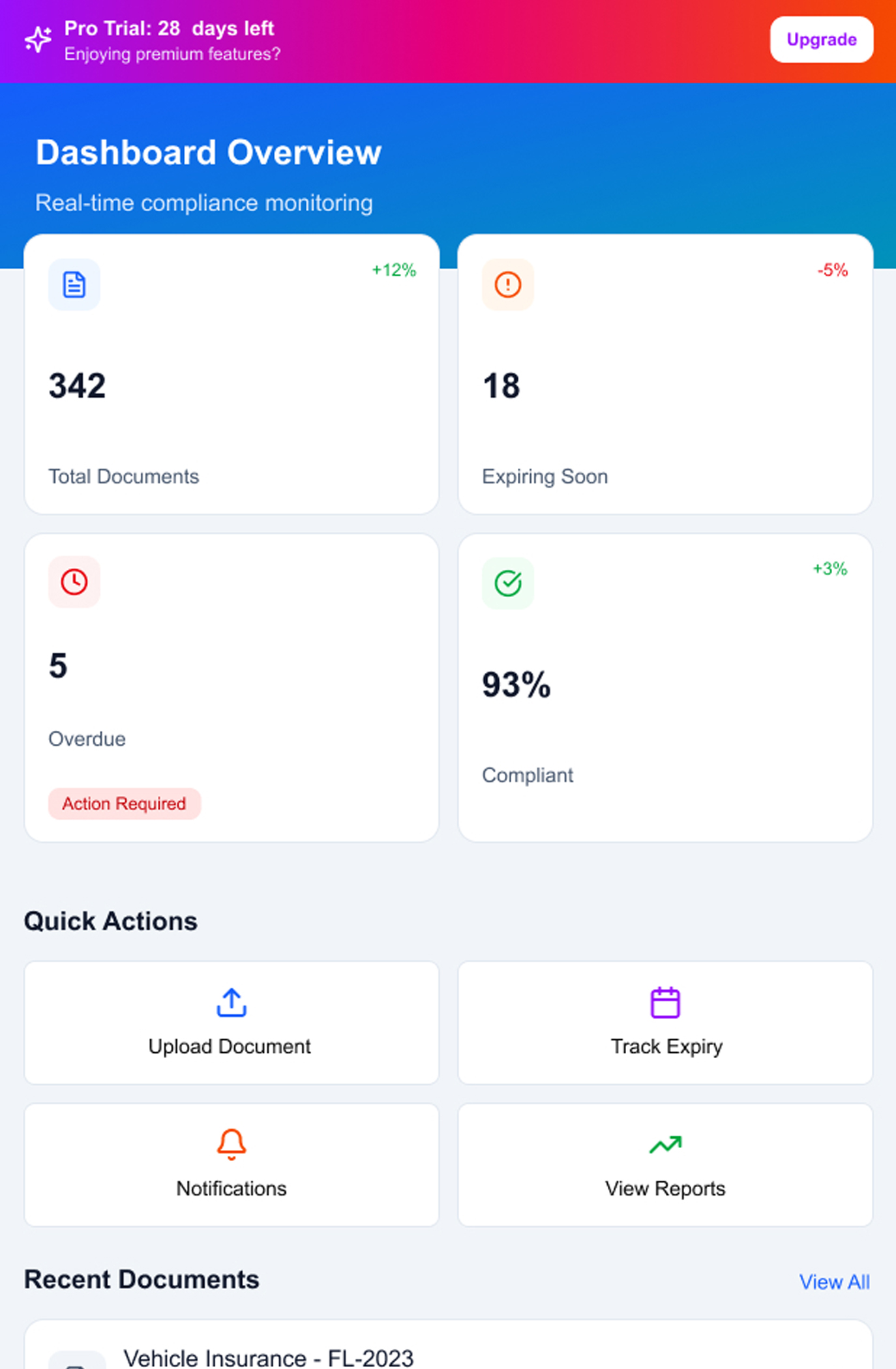 Never miss a document expiry again. Automated tracking, multi-channel notifications, and compliance dashboards for insurance, HR, fleet, and immigration documents.