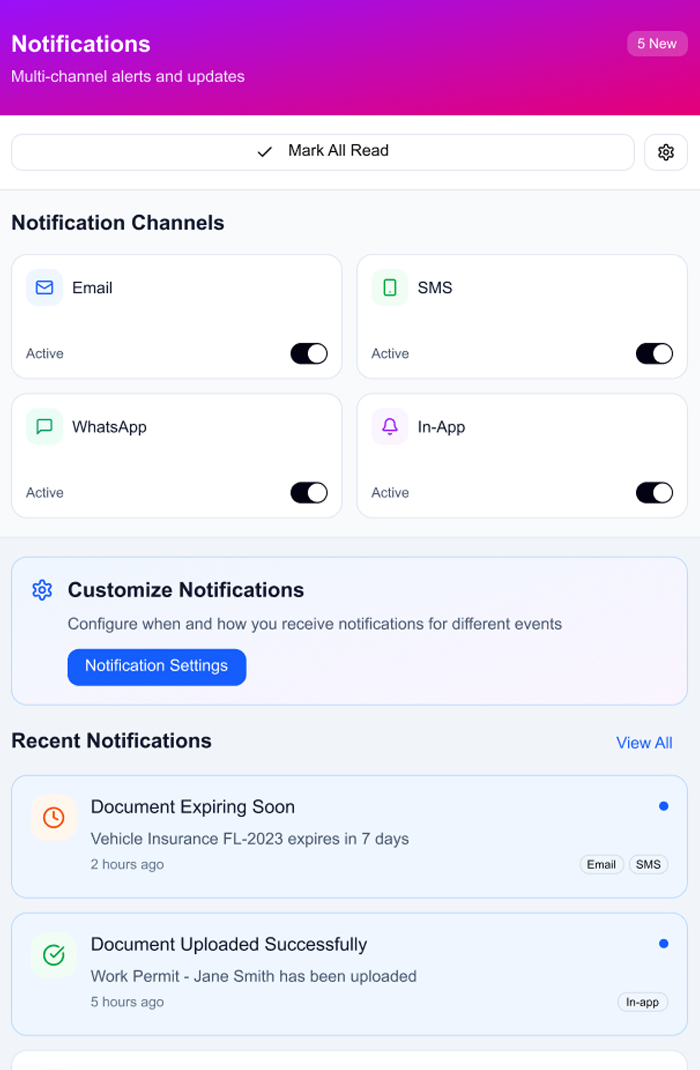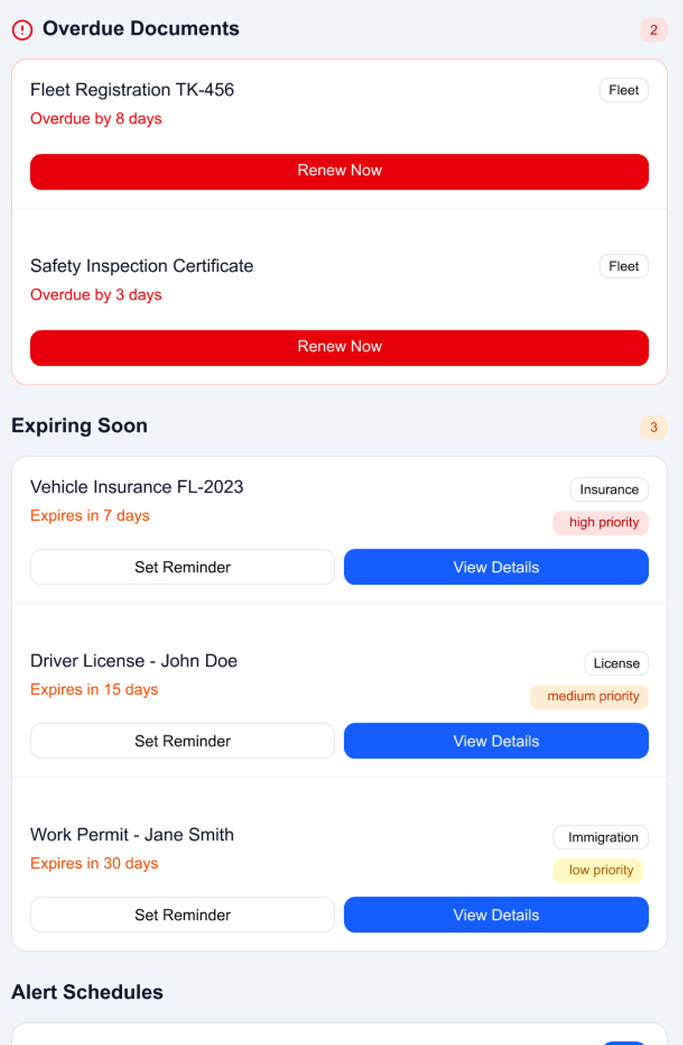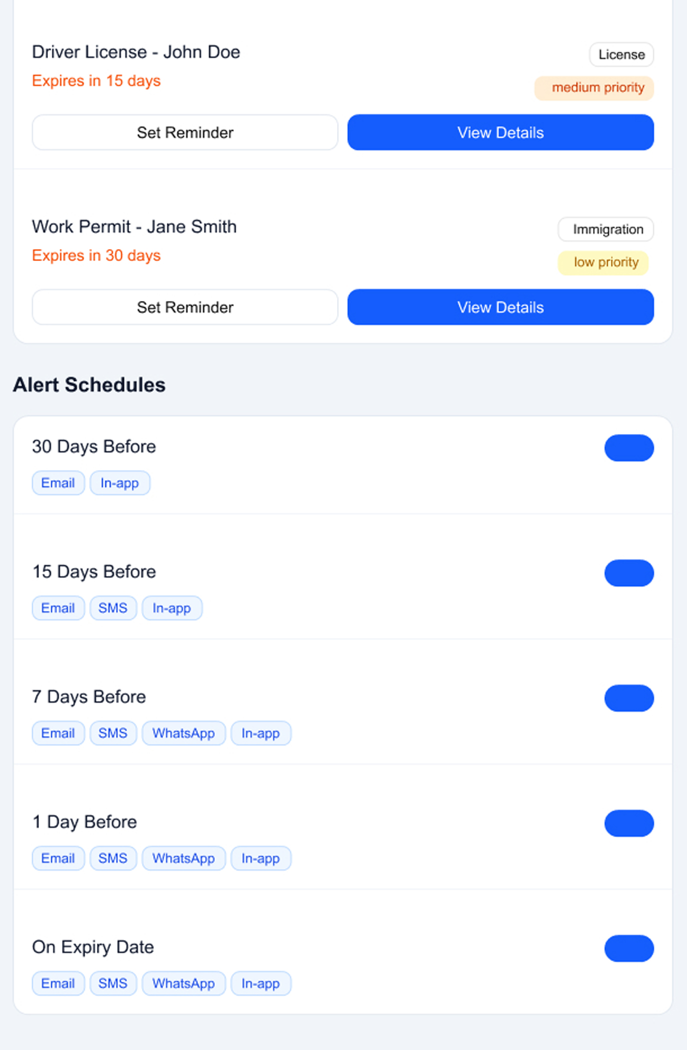 Never miss a document expiry again. Automated tracking, multi-channel notifications, and compliance dashboards for insurance, HR, fleet, and immigration documents.