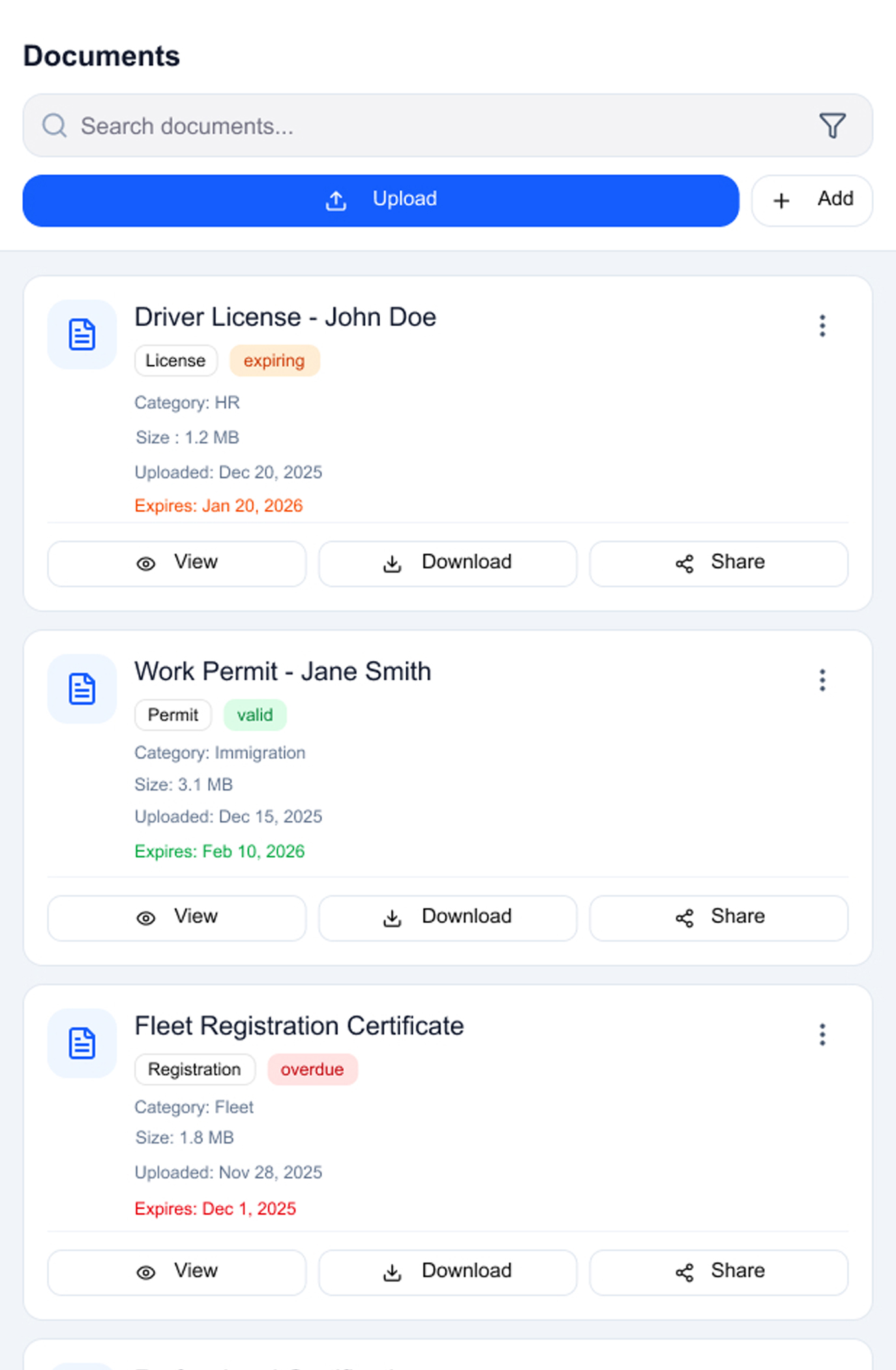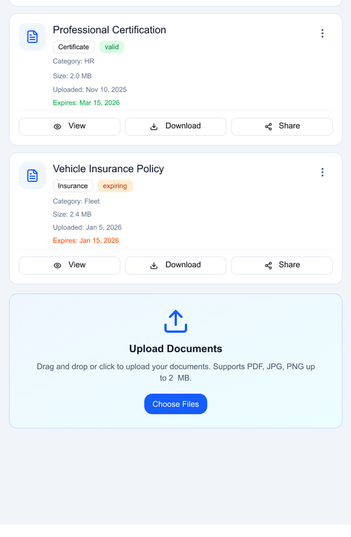 Upload documents with expiry dates
