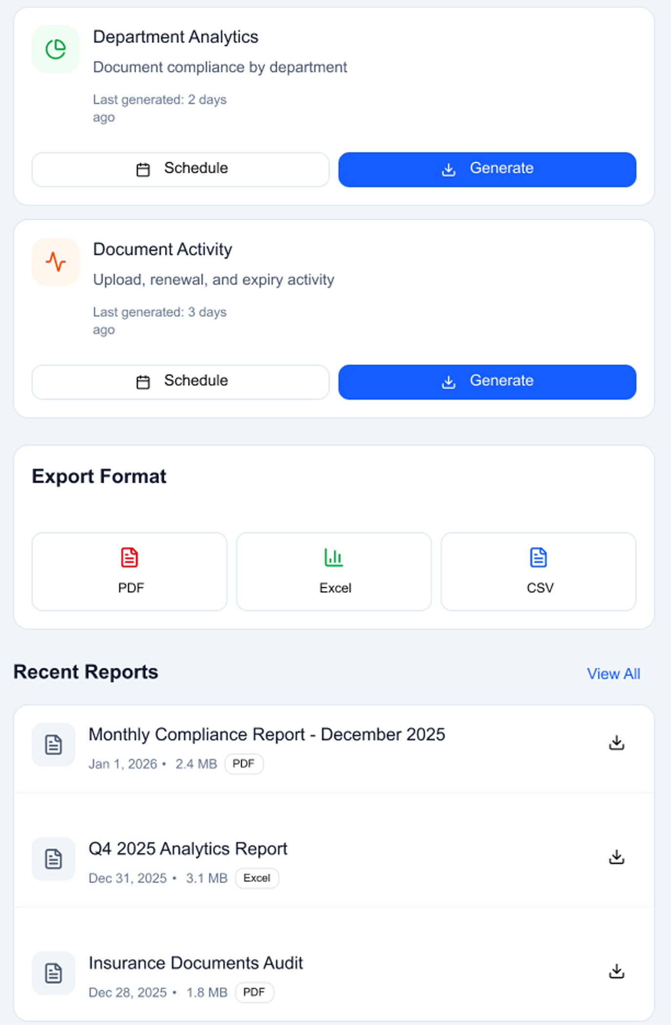 - Compliance reports